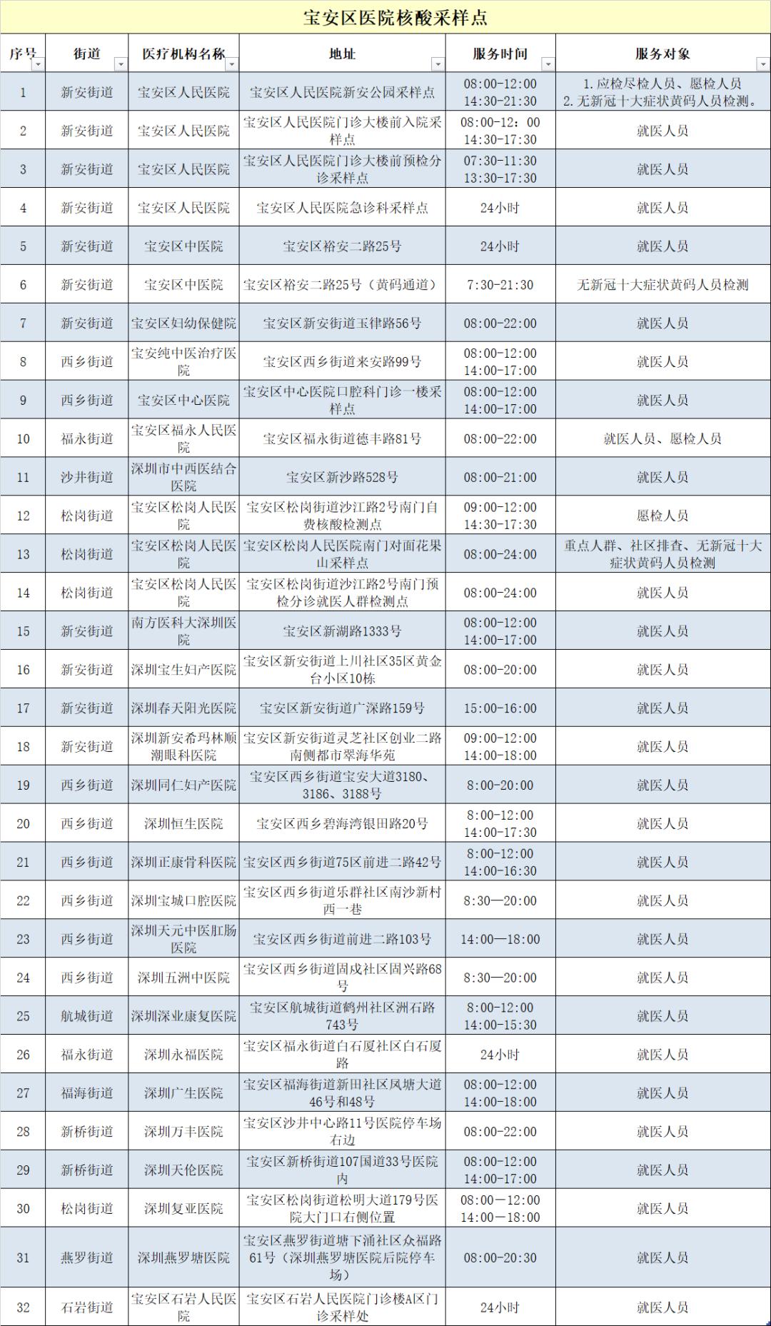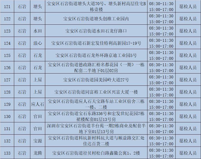另,石岩街道执行特殊疫情防护政策,核酸点不在此次公布范围。