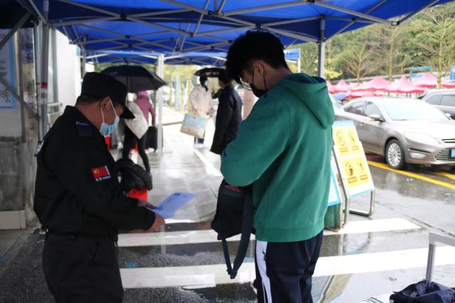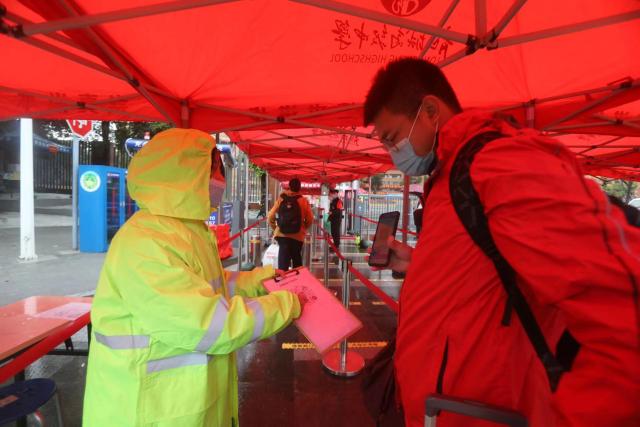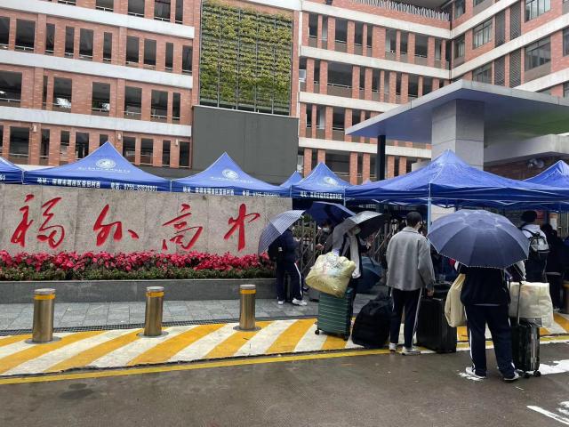 早上7点半开始,深圳实验学校高中部高三学生开始陆续错峰返校。针对特殊天气情况,学校昨天赶工在校门口搭建临时雨棚,方便学生避雨。按市里防疫相关要求,入校后,学校将对师生进行封闭式管理。