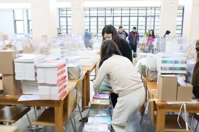 为迎接新学期线上学习,2月19日,布吉高级中学高一年级与邮政部门联系,组织党员教师义工和部分青年班主任,把学生教材邮寄到学生手上。