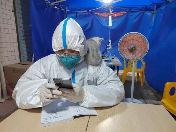 “今天天气非常寒冷,我清晨刚出门就打了个寒颤,结果一上岗位便看到核酸检测点位放置了大号取暖器,并且帐篷的围帘也得到了加固,真的很贴心。坐在这里不会感觉到寒冷,小猫也跑来取暖,玩了好一会都不肯走了。”一位医护人员笑着说道。