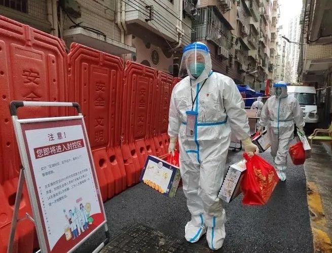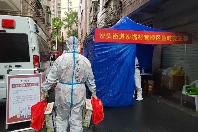 据悉,封控区实行“区域封闭、足不出户、服务上门”的措施,沙头街道工作人员为居住在封控区的居民一一上门送上御寒物资和爱心卡片。