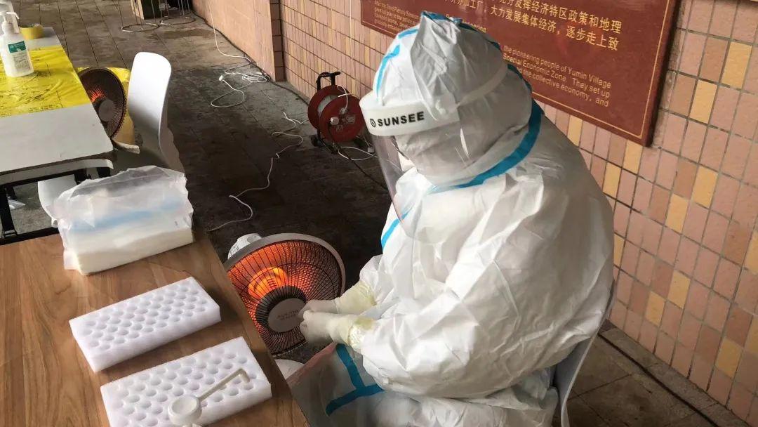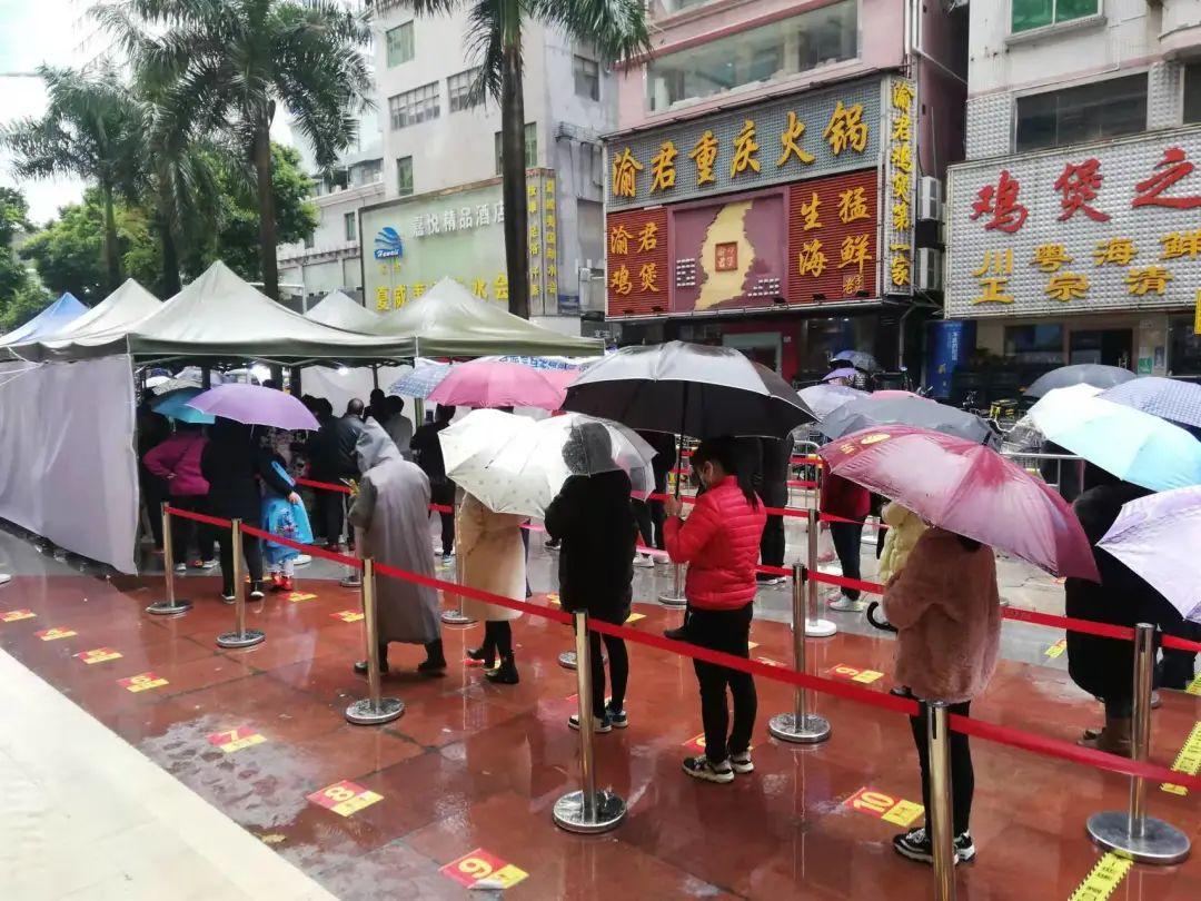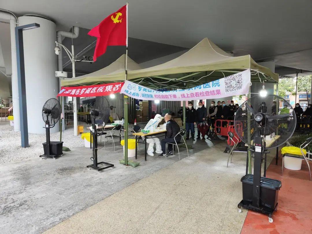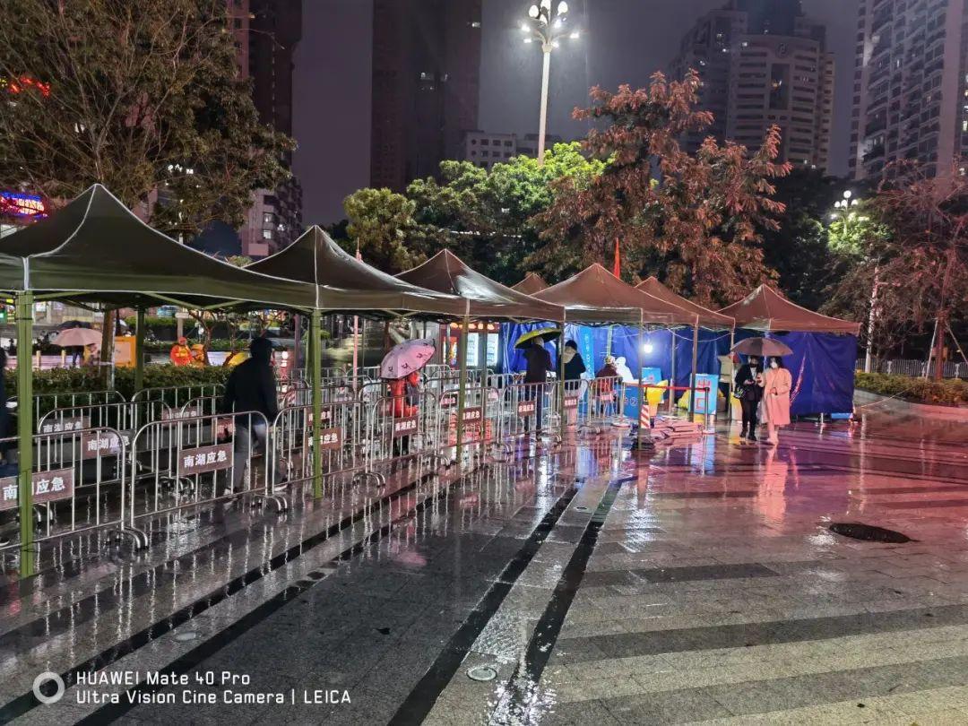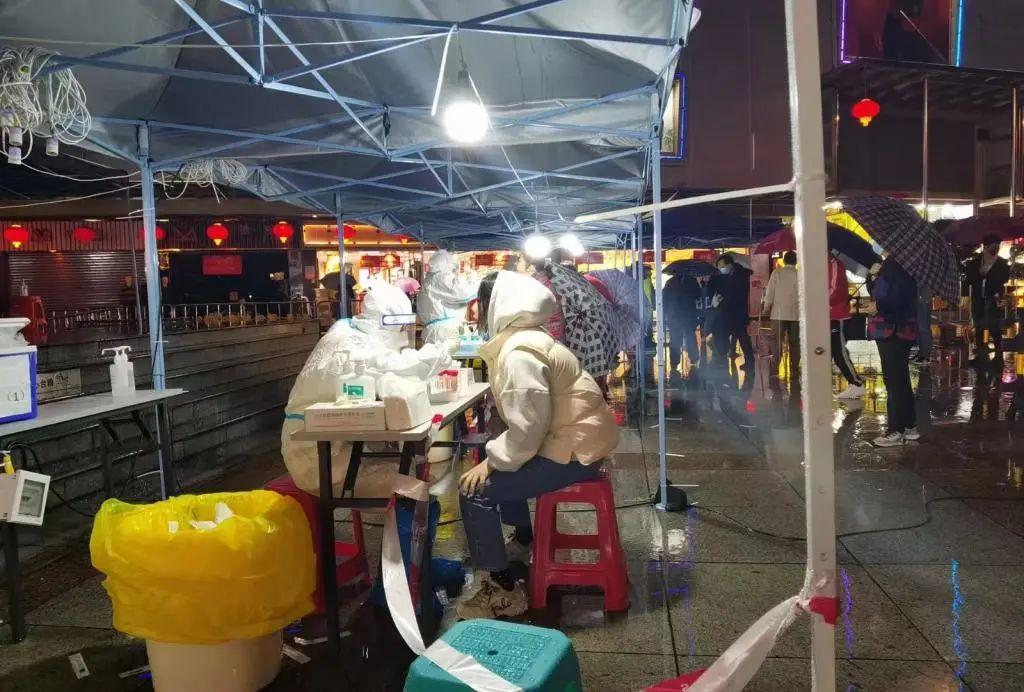 不仅如此,渔邨社区的核酸检测点原本设置在村口公园,但考虑到雨天,社区工作人员及时把它转移到了文化长廊。这样方便了医护人员的工作,排队的居民也有了挡雨的地方。同样,位于和平世界金融中心的核酸检测点也及时与物业协调,转移到了温暖的室内,让市民和工作人员免受刺骨的寒风。