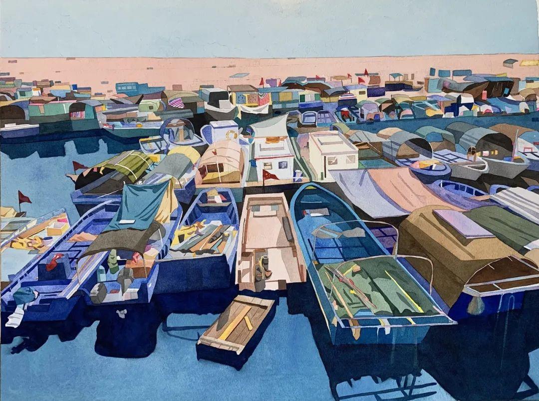蒙春雨 /《春江水暖》/ 52cm×70cm / 纸本水彩 / 2021年