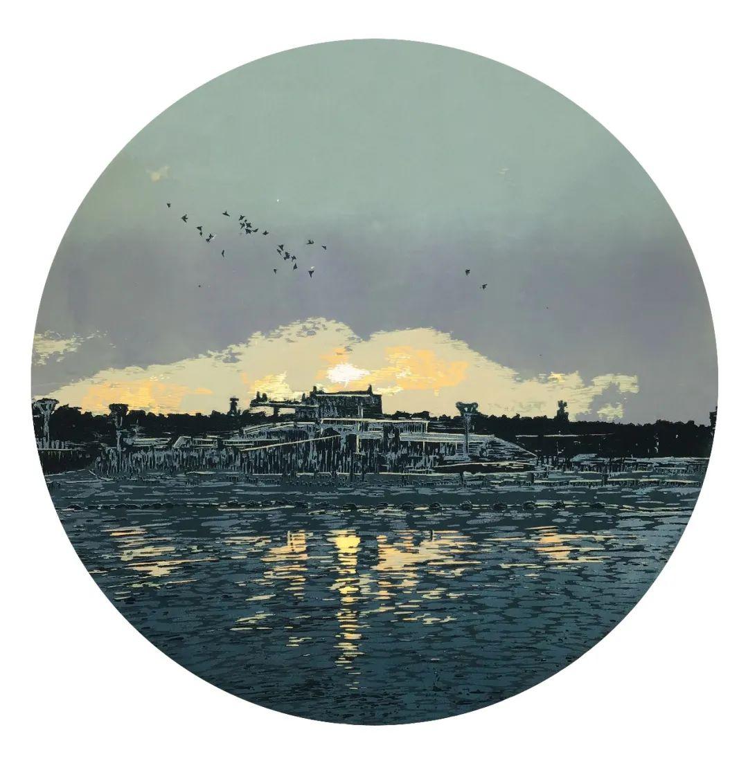 吴艺鑫 /《潮起》/ 66cm×66cm / 绝版套色木刻 / 2020年