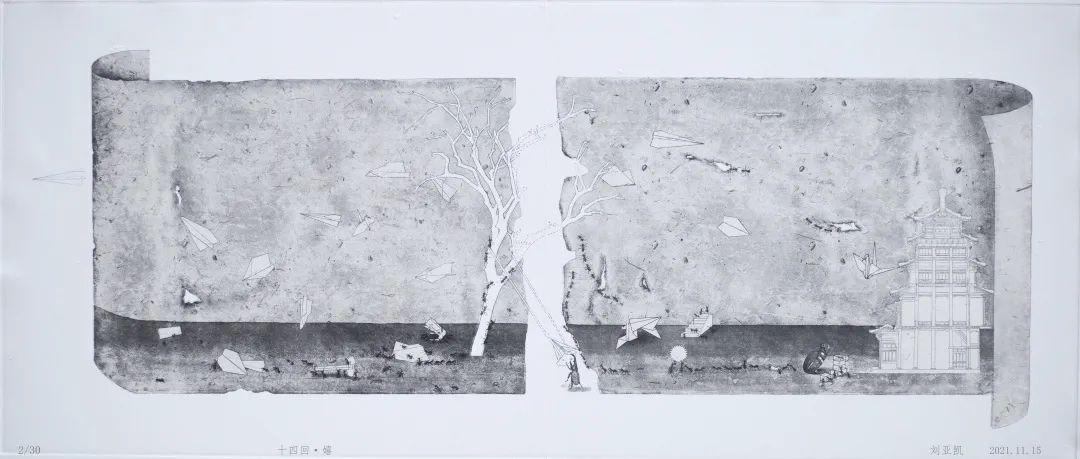 刘亚凯 /《十四回·嬉》/ 42cm×98cm / 版画 / 2021年