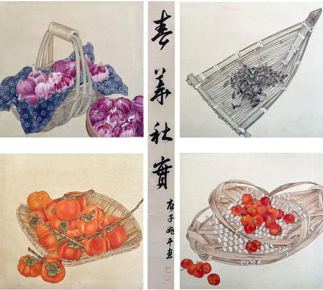 夏婉平 /《春华秋实》/ 100cm×100cm / 国画 / 2021年
