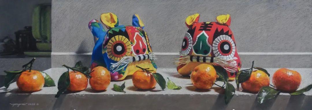 杨巍 /《有布老虎的静物》/ 35cm×99cm / 粉画 / 2022年