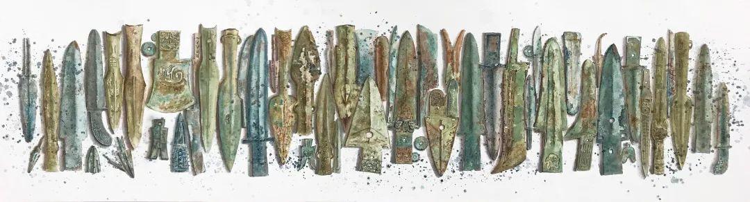 陈雨歌 /《青铜之韵系列3》/ 46cm×172cm / 水彩 / 2019年