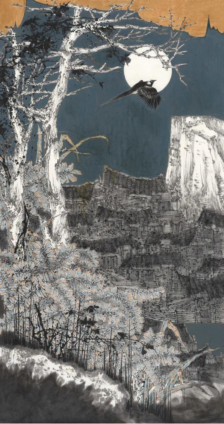 王刚 /《月是故乡明》/ 180cm×97cm / 国画 / 2021年