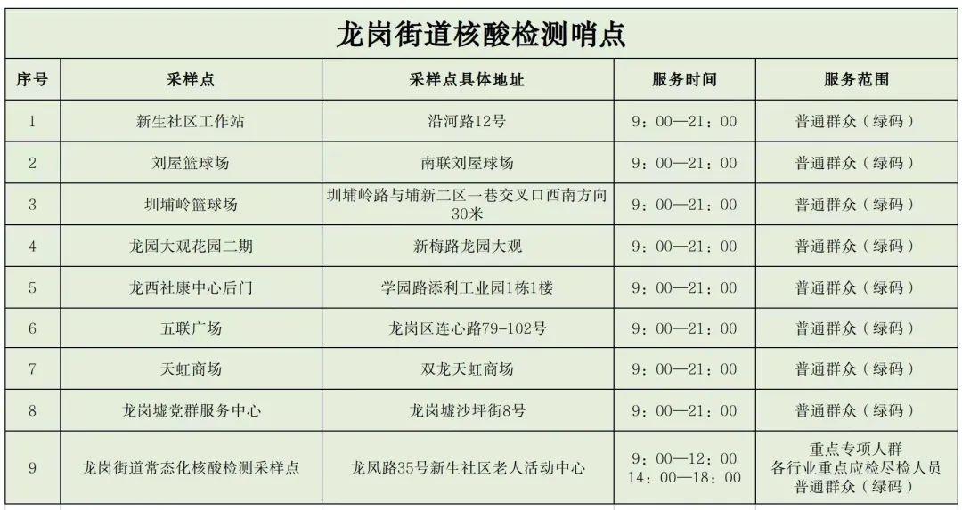 龙岗街道核酸检测哨点有变化