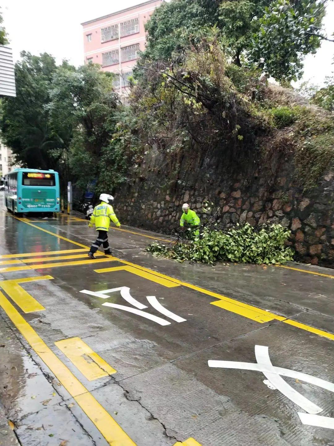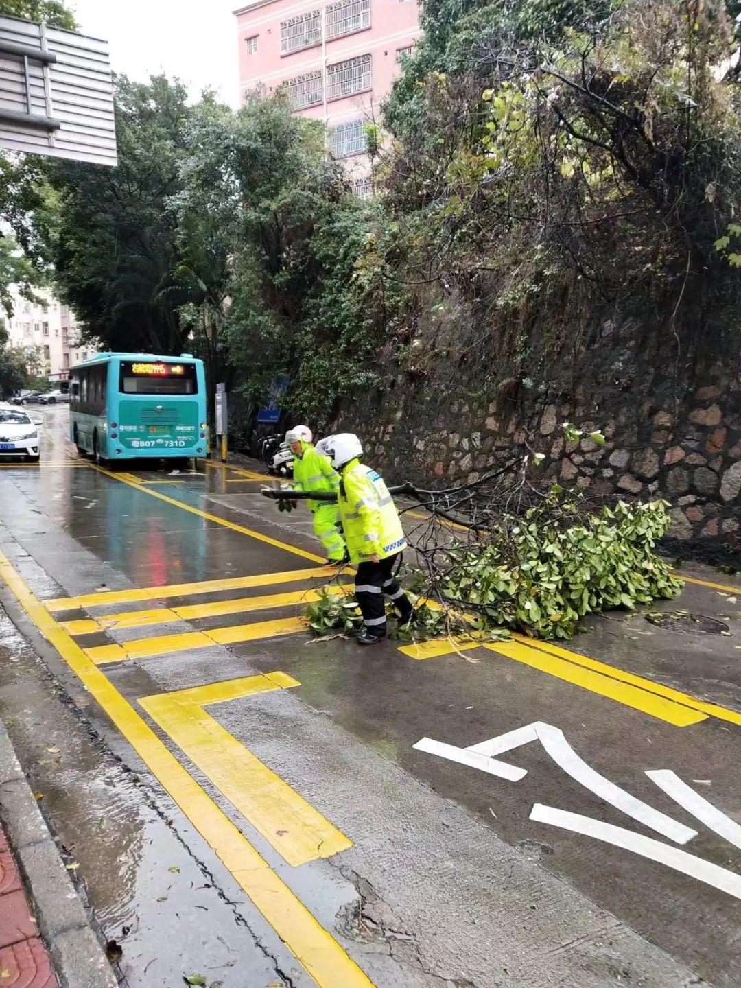 2月20日上午,交警铁骑巡逻至望桐路望桐路公交站路段发现树枝倒伏在道路中间,存在很大的安全隐患,严重影响过往车辆正常通行,于是联合环卫工人冒雨把倒伏的树枝拖至道路一侧,恢复路面正常通行,确保过往车辆行车安全。