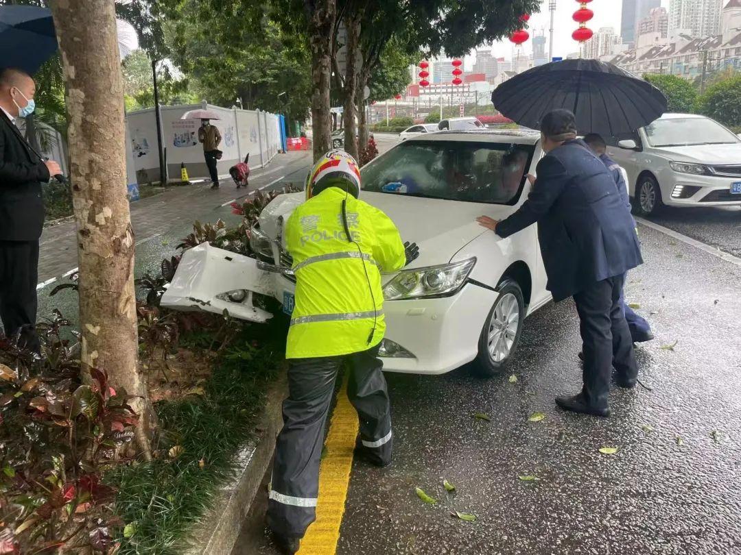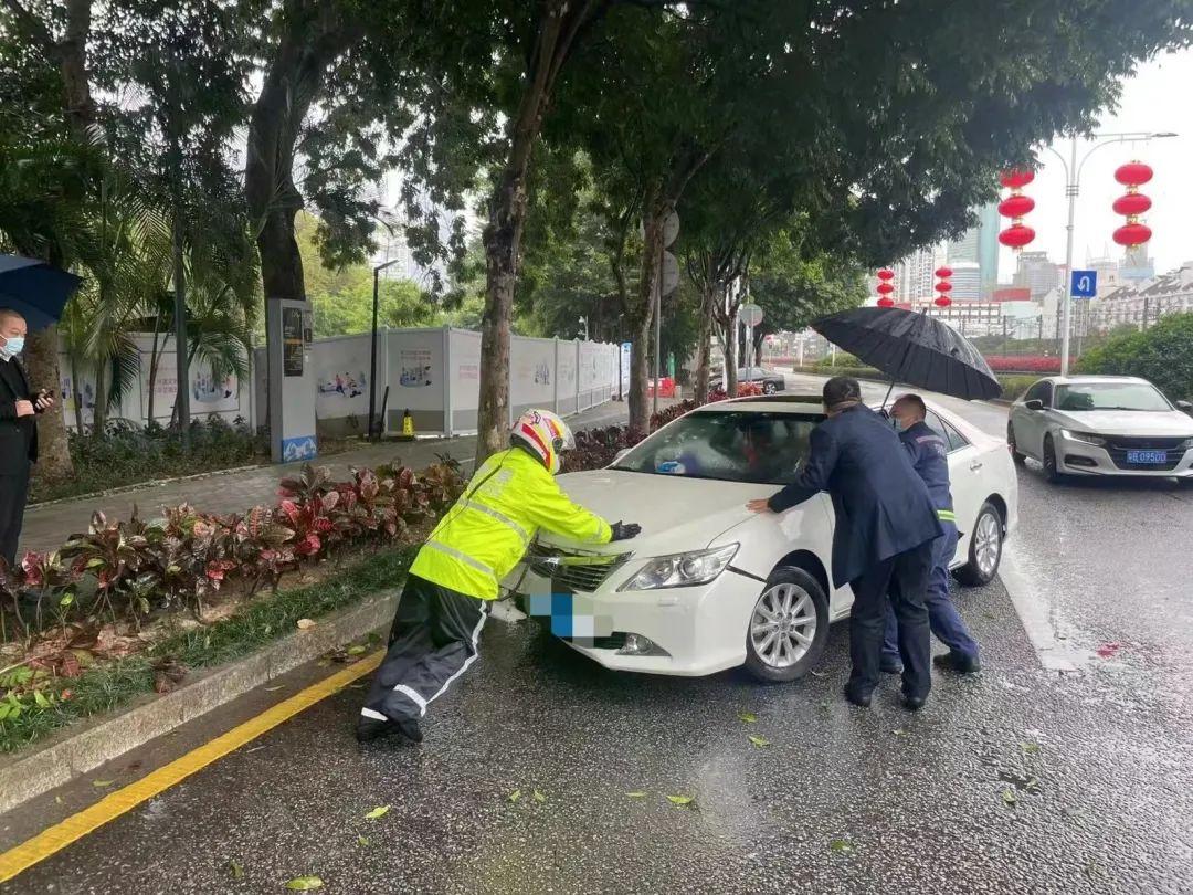 2月19日,交警铁骑在人民公园路执勤巡逻时,突遇一轿车冲上非机动车道撞上行道树,队员上前询问司机情况有无受伤,得知无人员受伤,立即上报给指挥室通知拖车前来救援,等待间隙疏通拥堵路况,队员与司机合力将轿车移至路边等待救援,随后队员恢复正常勤务。