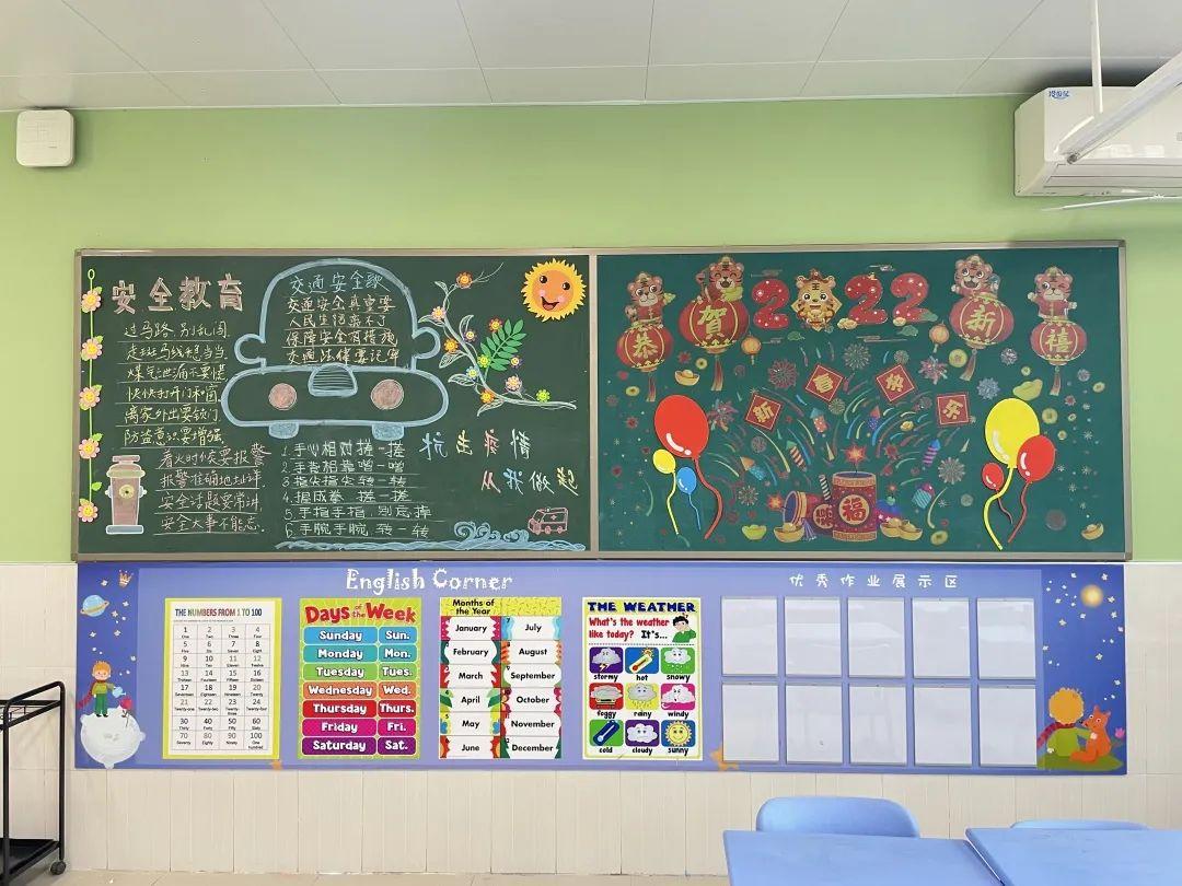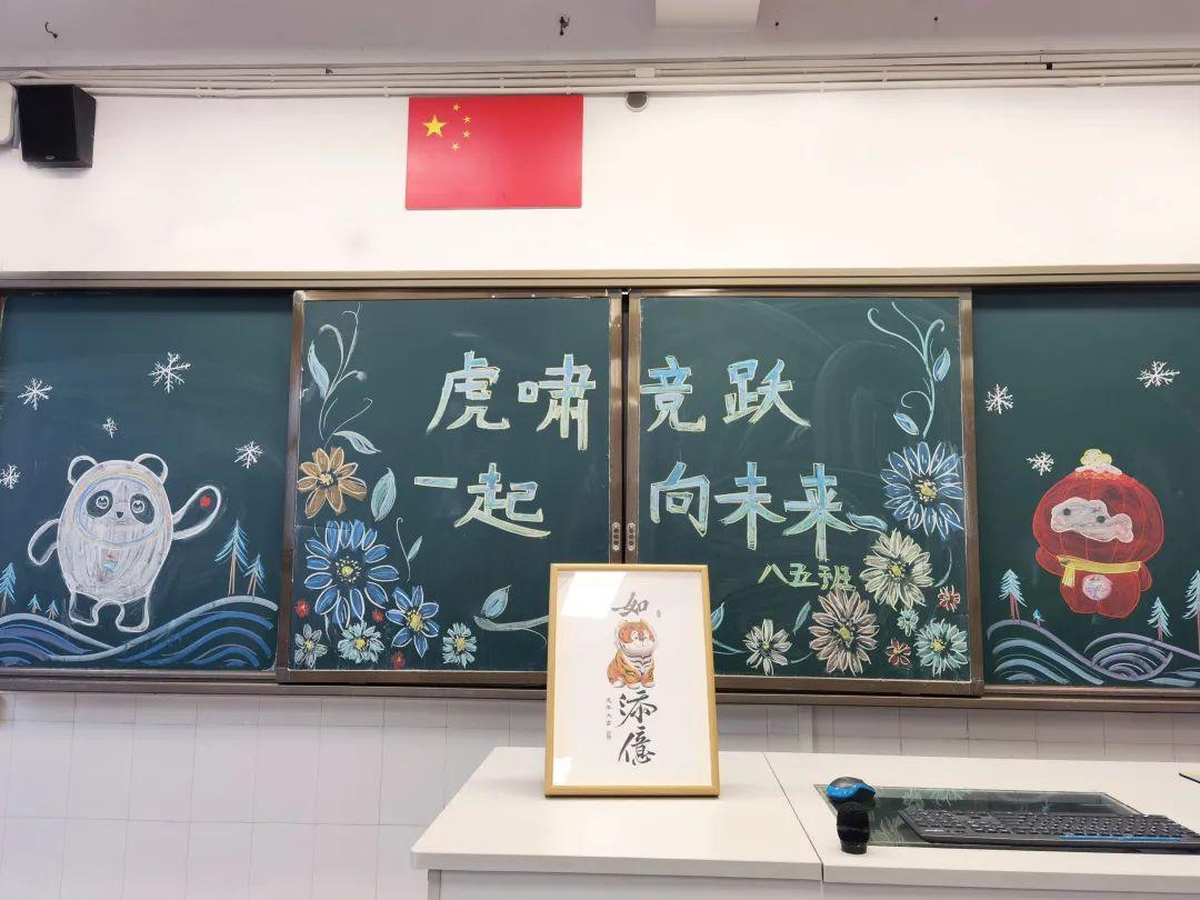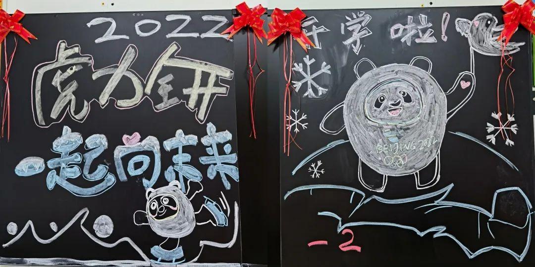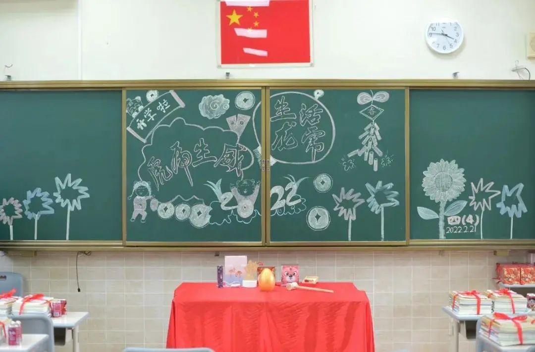 空旷的校园,安静祥和,美好如初。随意走进一间教室,美丽的画卷在眼前展开,教室整体布置整洁、优雅,绿植生机勃勃,黑板报也各具特色。与虎年、冬奥相关的装饰元素让教室充满新年的余味和冬奥氛围。开学礼包和教材也整整齐齐地摆在每个课桌上,待到春暖花开时,与同学们见面。