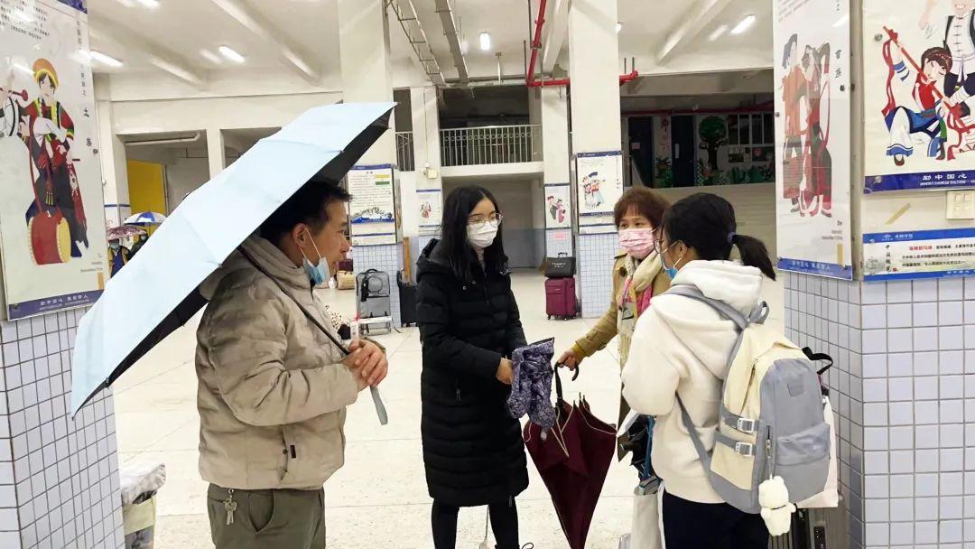 今日深圳,寒冷橙色预警高挂,寒风吹,冻雨落,可平湖中心学校的老师们早已无暇顾及那淋湿的头发与浸湿的鞋袜,他们只想把书包尽早、完好的交给每位家长。站在校门前的老师们,用最暖心的微笑迎接着久未见面的家长和孩子。