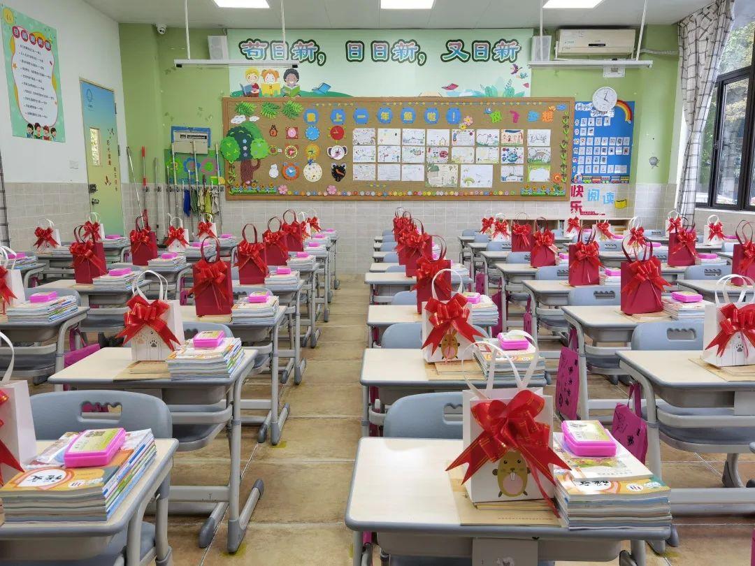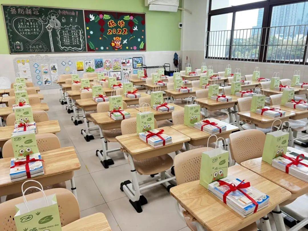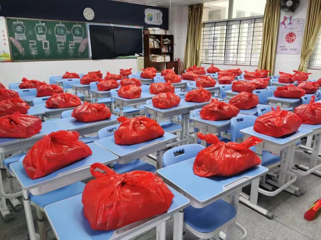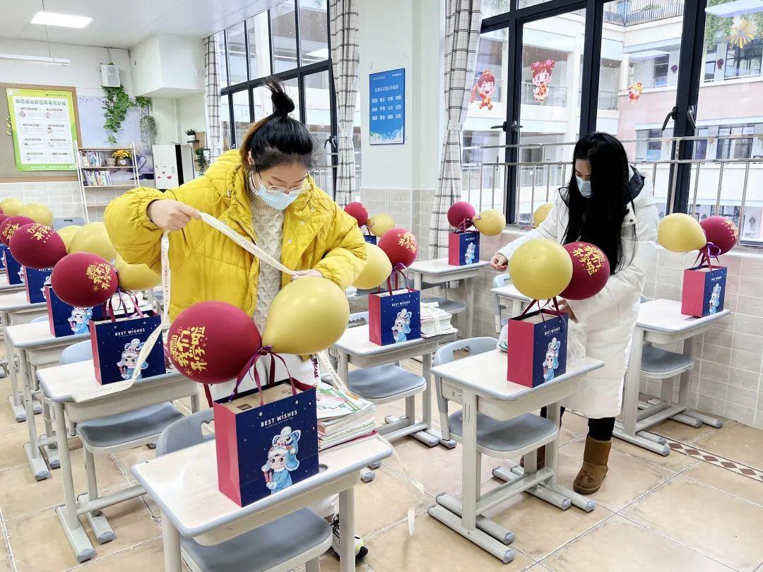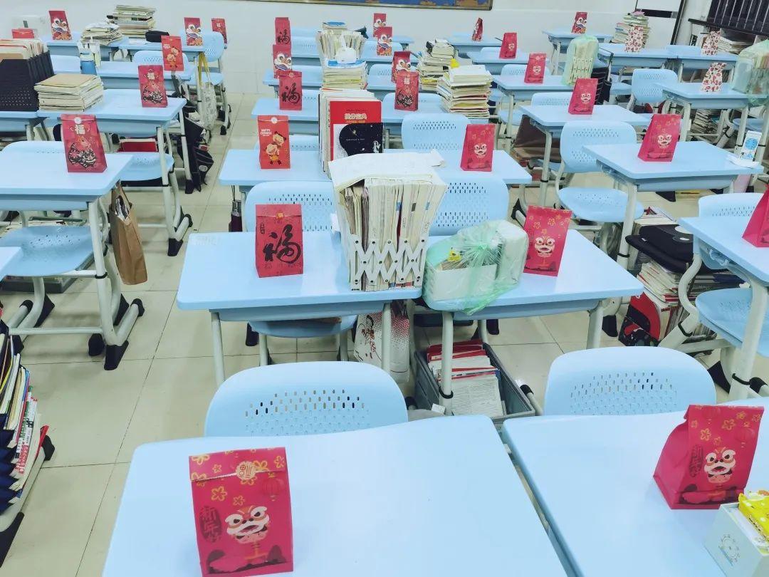 新年、新春、新希望,千言万语,都藏进小礼袋,绘成私人订制版的文化墙。在整洁如新的教室里,一摞摞的崭新教材、一袋袋高颜值小惊喜、一个个暖心防疫小礼包……无不传递着学校对同学们的期待。相见延期,但爱,一直在线!