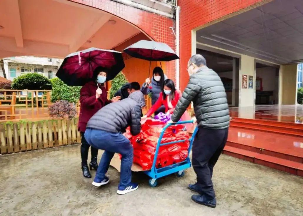 返校的时间虽然延迟,但是龙外的爱,不延期!各班主任和家长们早已装扮好教室,准备好精美的开学礼物。线上教学开展前夕,家长们冒着寒风冷雨,第一时间来到学校,错峰领取教材,肩挑背扛、手提怀抱,用实际行动诠释同为龙外人的责任担当。