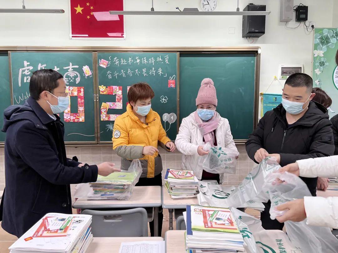 从延迟开学到开展线上教学,为了满足学生在家线上教学需要课本教科书的要求,全体教职工马上统一做好同学们的课本教材发放工作。