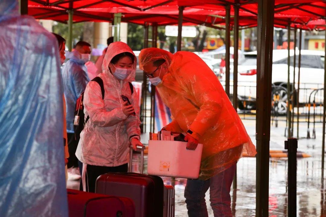 阴雨绵绵,寒风瑟瑟,但恶劣的天气并没有阻碍志愿者们行走的脚步。他们迎着风雨,看到行李繁多的学生第一时间伸出援助之手,看到淋雨的学生马上为其撑起雨伞;一句句“欢迎回校”,一声声“我帮你拿”……他们穿梭在校园内的身影,为高三学子的顺利返校提供了强有力的协助。他们是平冈最可爱的人,也是最耀眼的“平冈红”。