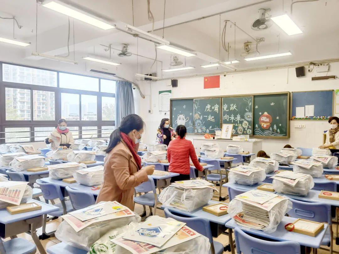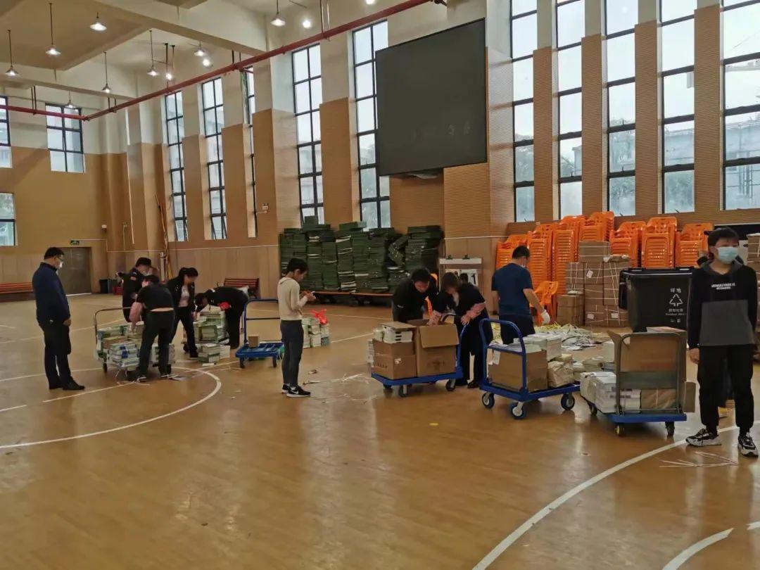 为迎接新学期线上学习,2月19日,布吉高级中学高一年级与邮政部门联系,组织党员教师义工和部分青年班主任,把学生教材邮寄到学生手上。