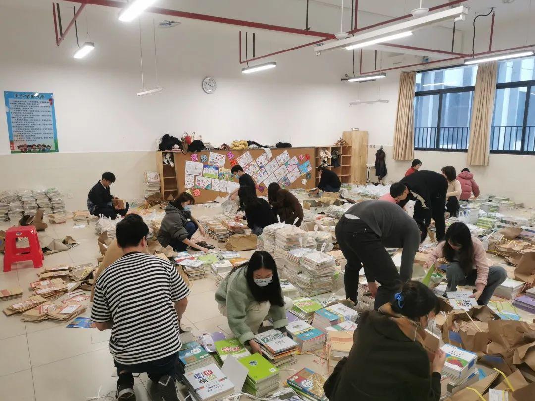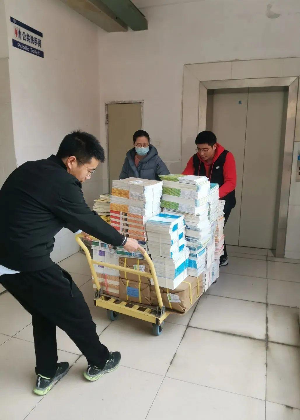 为确保六约学子尽早领到教材,全校教职工积极响应。搬运、分书、打包不亦乐乎。一个个红通通的打包袋,映照着一个个炽热的心。