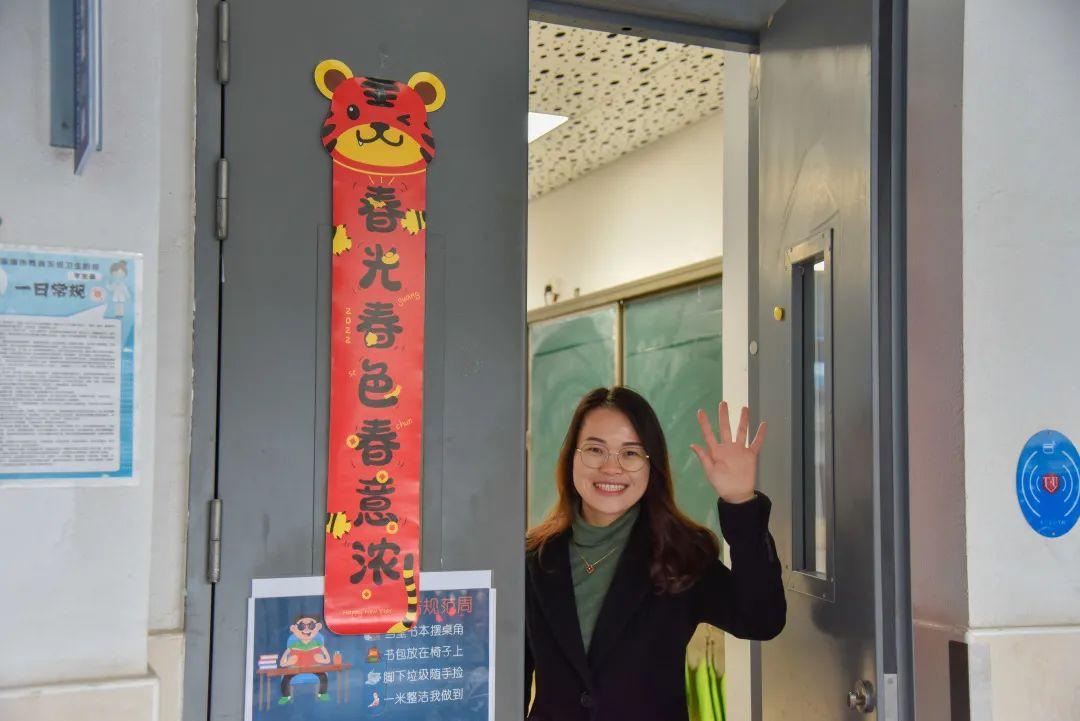穿越了一个寒冬,老师们与学生隔空拥抱,互诉思念,教室门前贴好的虎年春联,一切是那么亲切和温馨!