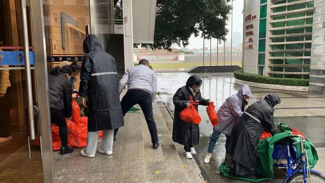 为让学生在家安心上好网课,龙岗中学提前一天为每位学生分好教材,龙中教职工纷纷上阵,寒冷的雨天更让他们团结一致,雨水打湿了他们的头发和衣裳,但学生的教材一点也没有淋湿,谁说站在光里才是英雄,龙中的热情就是光!