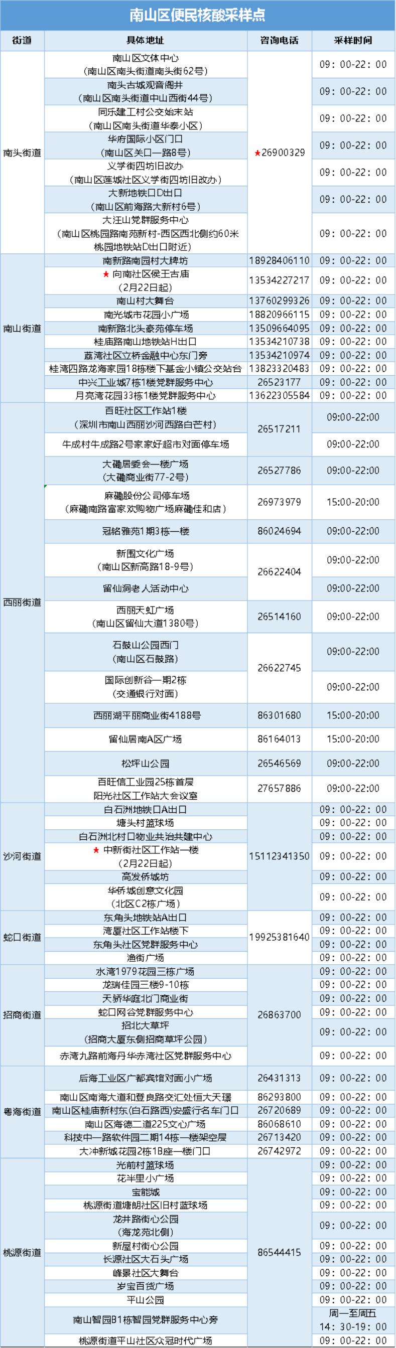 注:标★的向南社区侯王古庙和中新街社区工作站一楼采样为2月22日起(周二)开设
