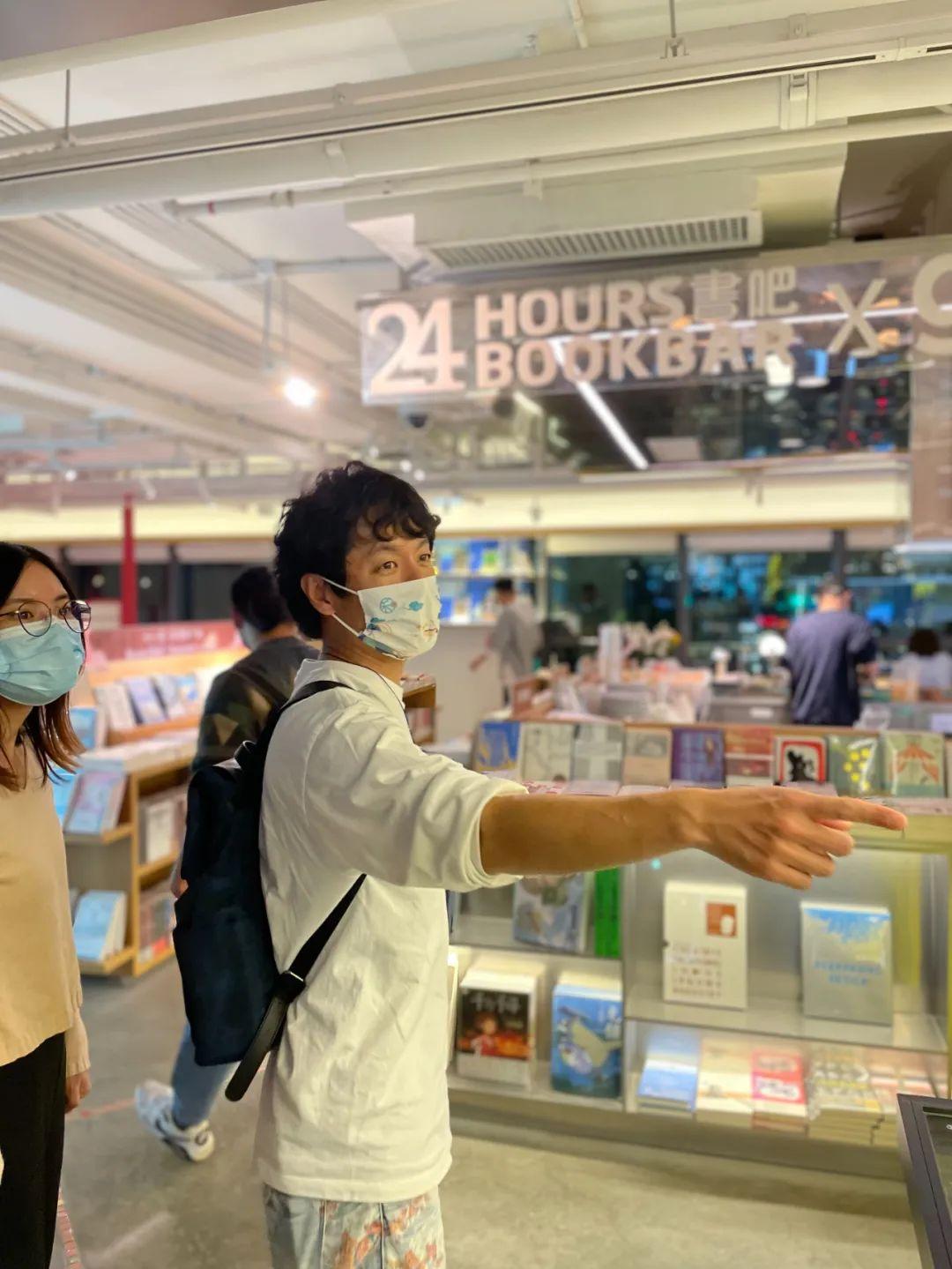 Ryo Takeuchi films in the 24 Hours Book Bar at Shenzhen Book City CBD store.