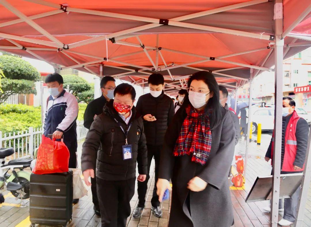 彭尧一行详细了解了学校疫情防控、教育教学准备、安全隐患排查等工作情况,查看了学校核酸检测点、高三年级的教室以及学生食堂的布置情况,提醒学校落实高三师生健康监测、检查校准测温箱等设施设备、做好日常消杀和错峰用餐等防疫要求,并叮嘱要做好全体返校师生员工封闭式住校管理,确保万无一失。