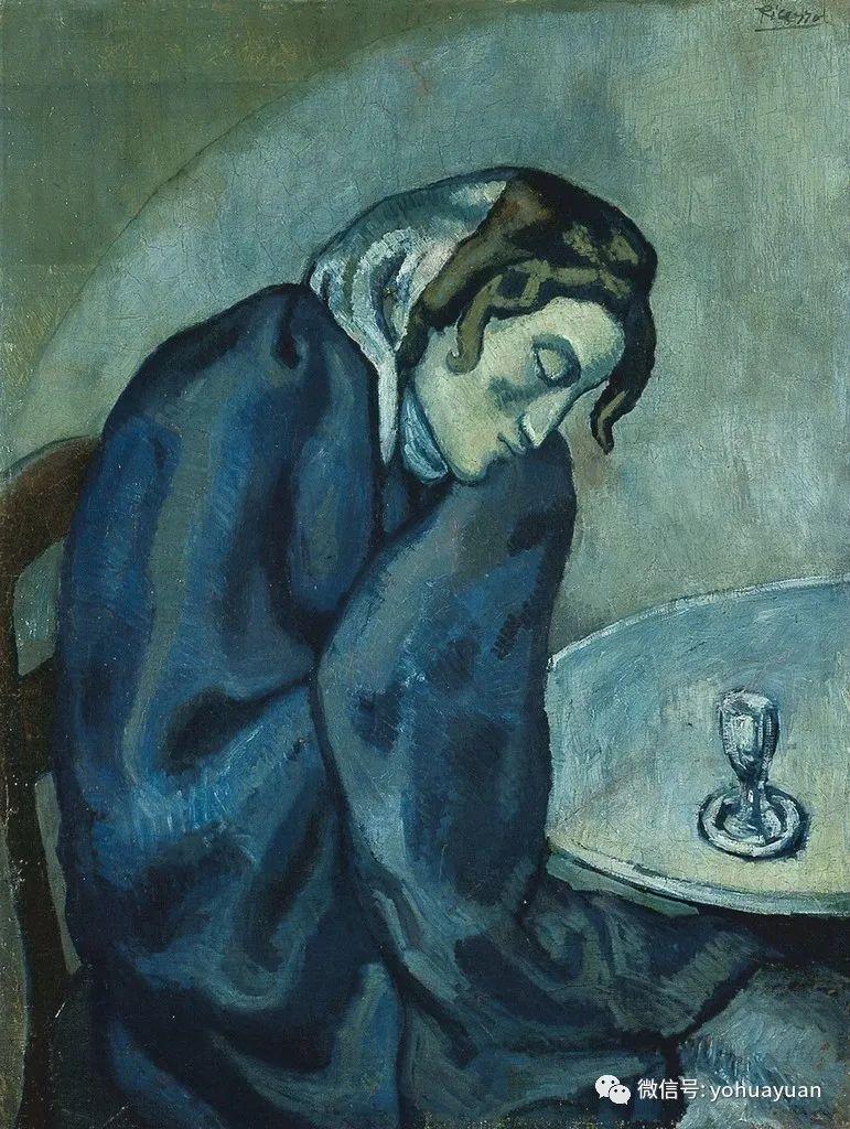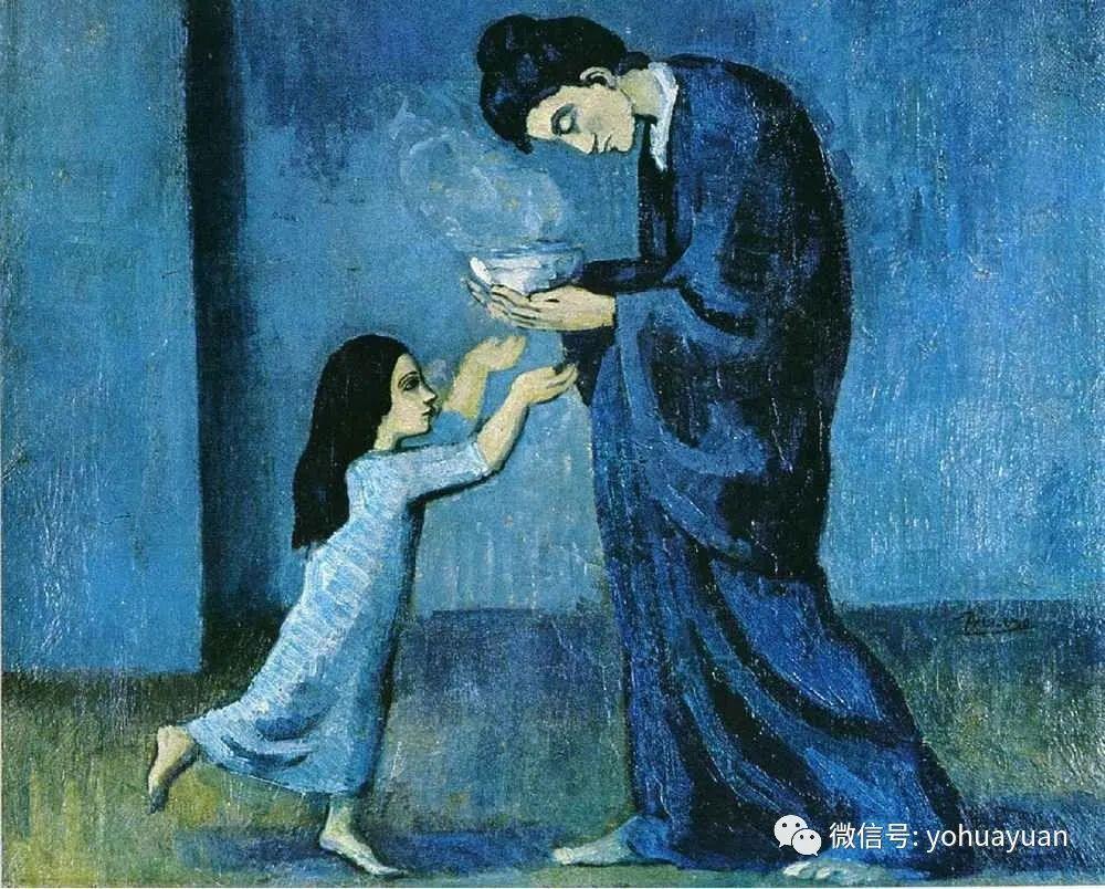 ↓毕加索的蓝色玫瑰时期的作品,所有的颜色都统一在一个主色调里,同时在这个主色调里各部分色彩又相互对应联系。