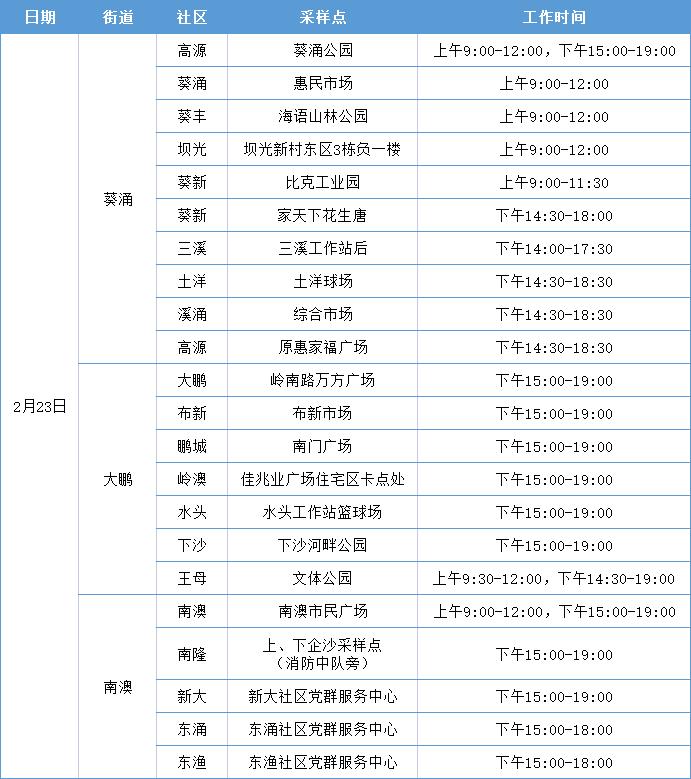 大鹏新区免费核酸检测点安排