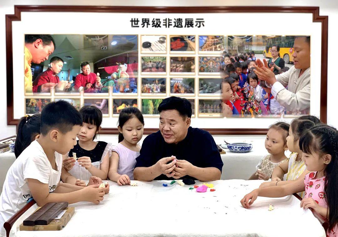 近20年来,为了传承这项技艺,他积极参加深圳非物质文化遗产项目进校园活动,在多所中小学教授面塑,并将现代人物和深圳元素融入作品中。比如,2020年恰逢深圳经济特区建立40周年,他制作了一组名为“渔夫一家”的作品。他还临摹象征深圳改革开放精神的“拓荒牛”等,希望通过“指尖”的技艺,记录深圳故事。