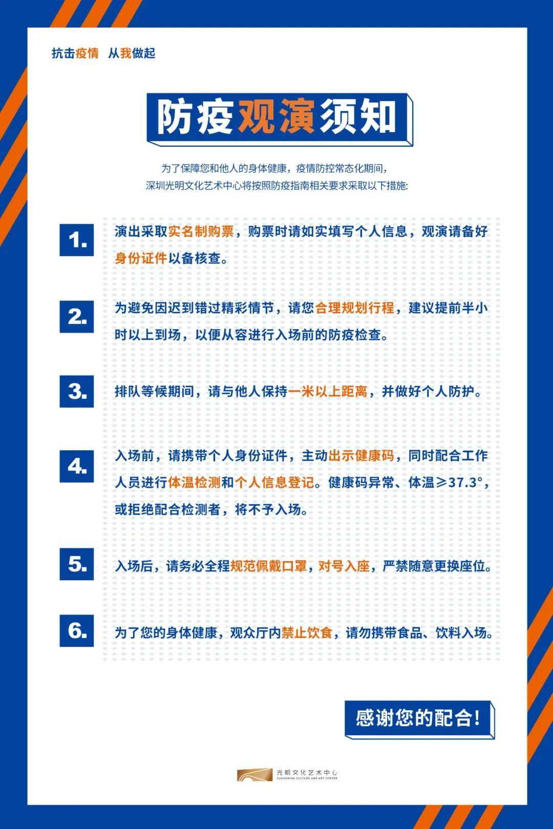 1. 目前身处疫情中高风险地区观众因防控需要将无法入场观演;