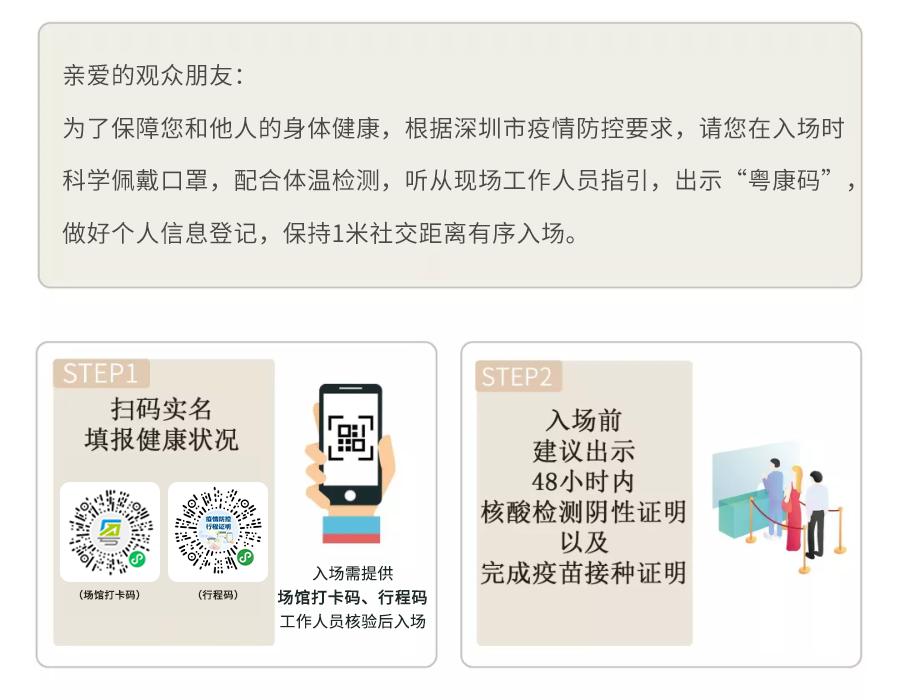 4. 请大家做好个人防护,科学佩戴口罩,保持安全距离,入场前按照工作人员指示,检测体温,出示粤康码、行程码,并进行个人信息报备。