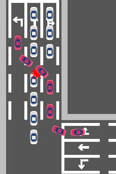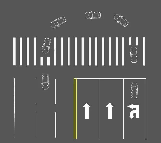 部分掉头半径不足的路口左转车道如果设置在最左侧的话,一次转弯难以完成掉头,需要连续变向掉头。这样不仅不能顺利的通过路口造成拥堵,而且在路口处倒车转弯是非常危险的。