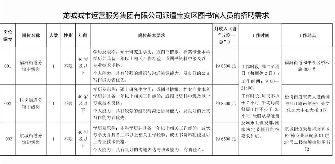 报名方式:填写《劳务派遣人员报名表》(点进底部“阅读原文”下载附件)且将报名表按“岗位编号+姓名+手机号”命名发送至btbalib@baoan.gov.cn