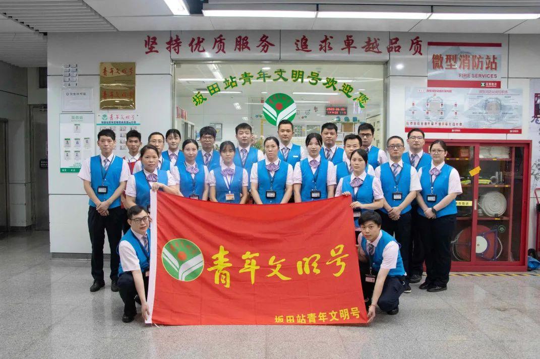 深圳运营客运二分公司站务二部站务五室坂田站市级青年文明号成立于2016年12月,车站现有员工26人,其中党员2名,团员10名,平均年龄28岁。全号紧抓提素强基,铸就一流团队,一抓教育,培育相互学习的环境;二抓思想,提高政治素质;三抓实效,提升业务技能。坂田站青年文明号作为一个服务窗口,提升服务水平和主动服务意识,处处推陈出“心”——用心、细心、核心、走心,将微笑服务的理念灌输到心里,体现在脸上。