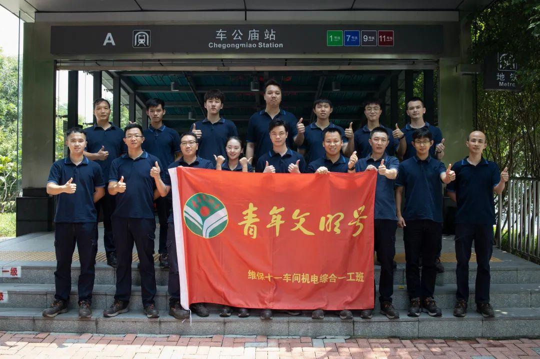 深铁运营客运一分公司维保十一车间机电综合一工班青年文明号,位于地铁11号线车公庙地铁站机电值班室,青年文明号共有成员16人,平均年龄29岁,主要负责福田站至红树湾南站及区间隧道、福车区间风井、车红区间风井、NOCC的低压动照系统、环控系统、屏电系统、给排水系统、FAS系统、ISCS系统六大专业等设备的运营保障工作,为乘客提供安全舒适的乘车环境。