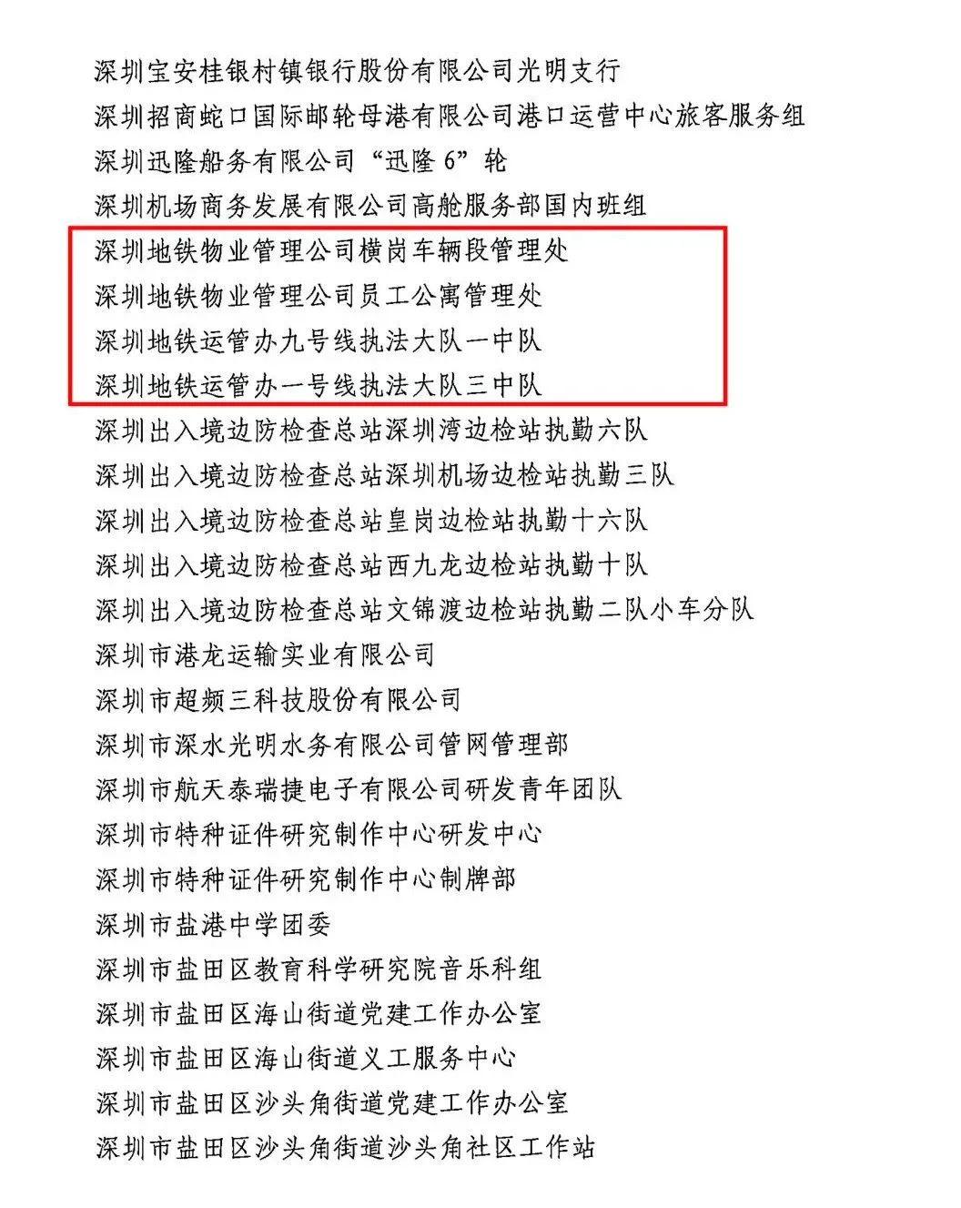 近日,深圳地铁13个集体