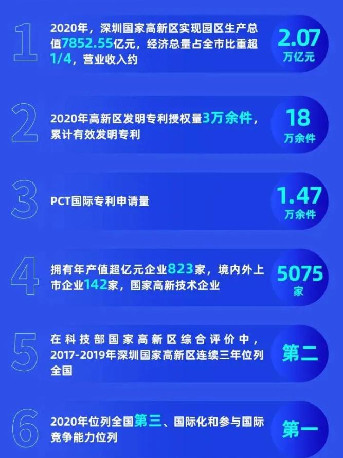 据统计,2020年,深圳国家高新区实现园区生产总值7852.55亿元,经济总量占全市比重超1/4,营业收入约2.07万亿元。