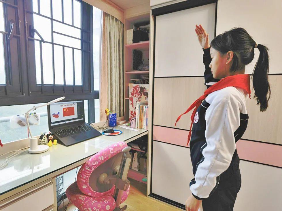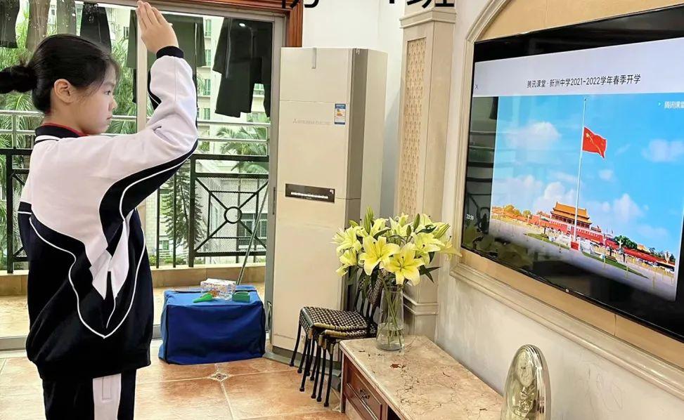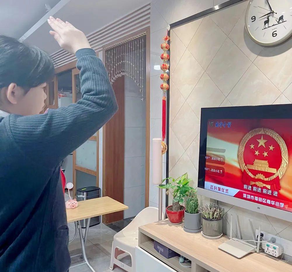春雨敲起战鼓,春风吹响号角。2月21日上午9点,福田区第二实验学校以一场仪式感满满的“云”开学典礼,开启了新学期的征程。伴随着雄壮的国歌,典礼拉开帷幕,学生们身着礼服,戴红领巾,敬队礼,在“家庭教室”里完成了特殊而庄重的升旗仪式。虽然居家上网课没有教室里其乐融融的氛围,少了一些监督和提醒,但同学们依旧努力保持学习的热情,在课上积极与老师互动、认真思考。