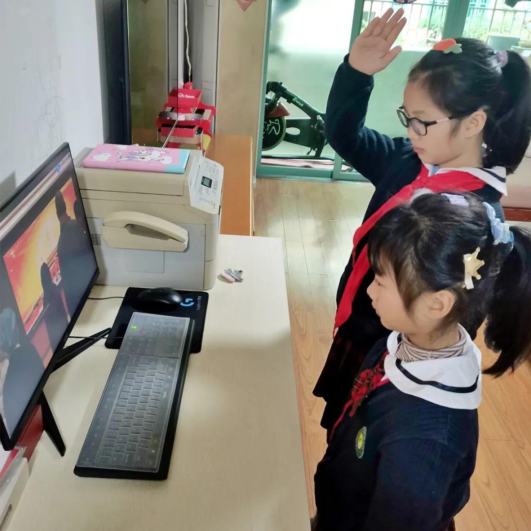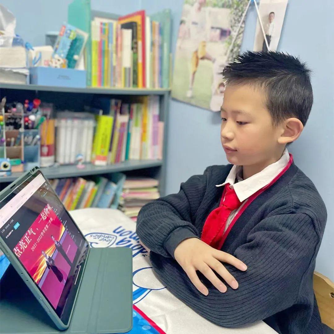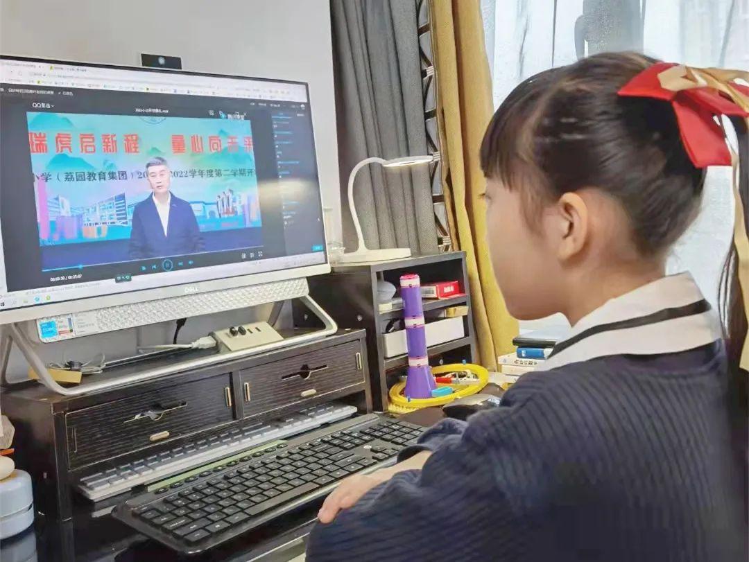 此次开学典礼采用线上录播的形式,“仪式感”满满。家长发来的一张张现场合照,为新学期刻下美好印记。随后,4至6年级同学们在各班老师的带领下有序地开展线上学习。老师们将精心布置的阅读、手工、体育锻炼、音乐欣赏等学习项目告知家长和学生,鼓励同学们合理安排时间、劳逸结合。