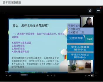 在华中师范大学龙岗附属中学(集团)平湖中心学校,线上教学第一节班会课的主题正是心理健康。本堂班会课由学校专业心理老师提供资料,从珍爱生命、学会求助等多个方面开展教育。