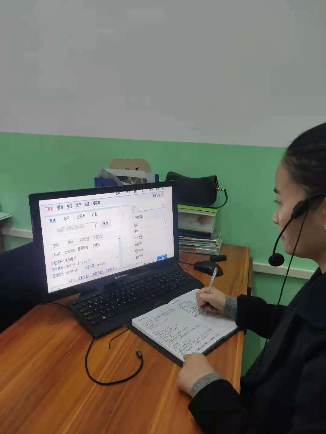 ▲ 兴泰实验学校的肖胤聆老师正在接听热线