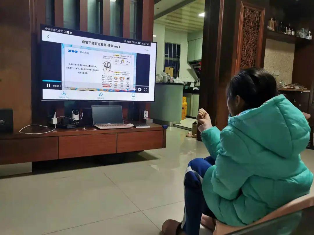 同天,南湾丹竹头小学举行了线上开学典礼,这位同学正在聆听心理老师关于居家学习心理调整的讲话。