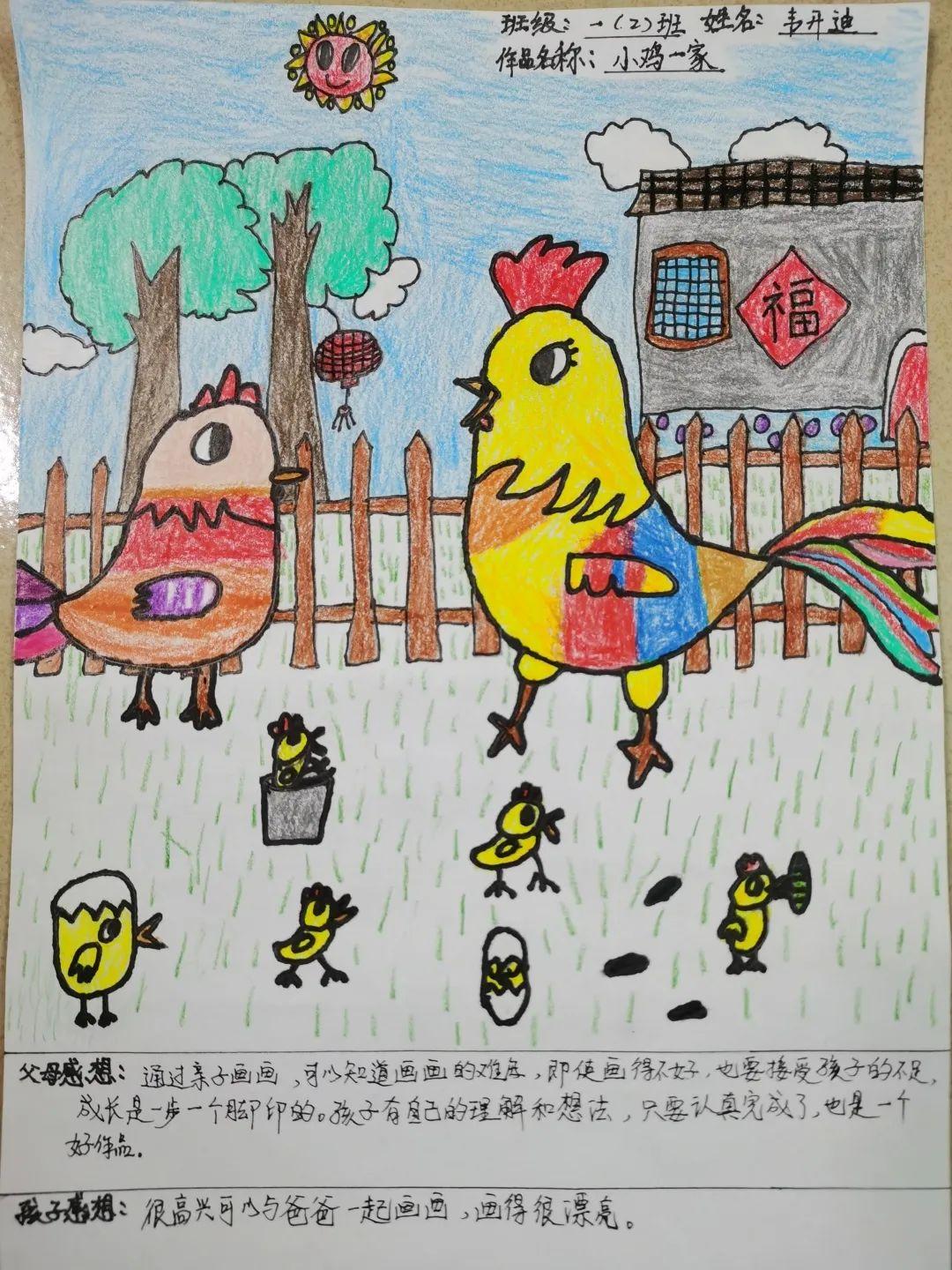 ▲ 学校一(2)班的韦开迪同学及家长的亲子共画作品