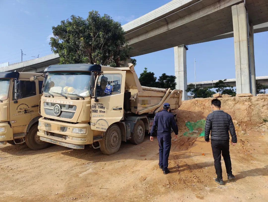 交警走进泥头车企业,检查复工复业情况并约谈企业负责人。