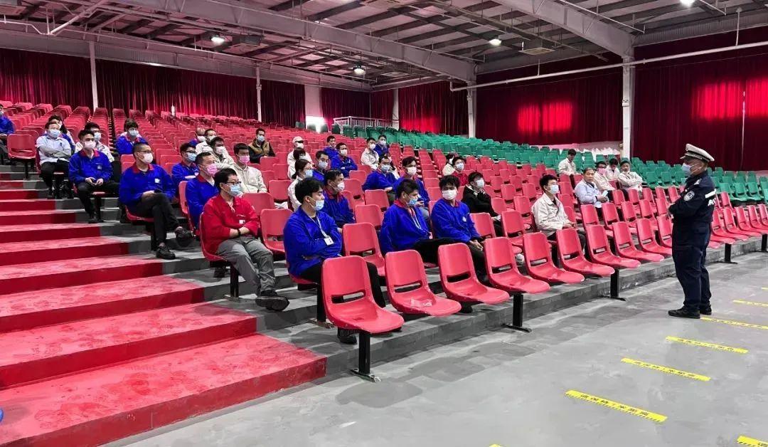 向安全负责人与企业员工宣讲交通出行安全常识。