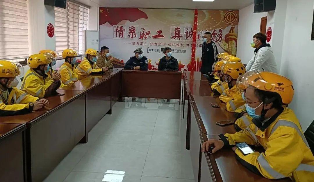 交警与街道交安办开展外卖行业复工复产驾驶安全座谈会。