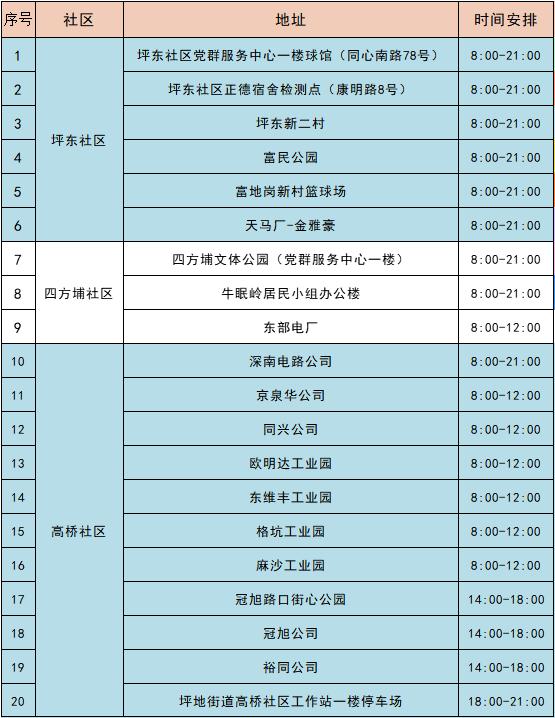 注意:2月24日,坪地街道其他社区暂不开展区域核酸检测工作,具体开展时间坪地在线将会第一时间发布。坪西社区、岳湖岗居民小组、坪地街道常态化核酸点(天宏街)3个核酸点正常开展采样,请有核酸检测需求的居民就近前往核酸点检测。